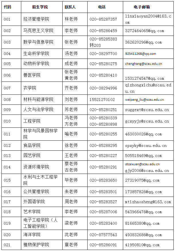 地址:广东省广州市天河区五山路483号华南农业大学研究生院招生办公室(行政楼316室)